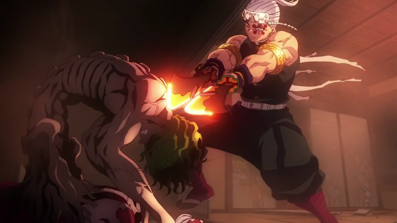 귀멸의 칼날 환란의 거리 편 5화 "화려하게 가자" - 탄지로의 한계 돌파와 우즈이의 진심이 만나