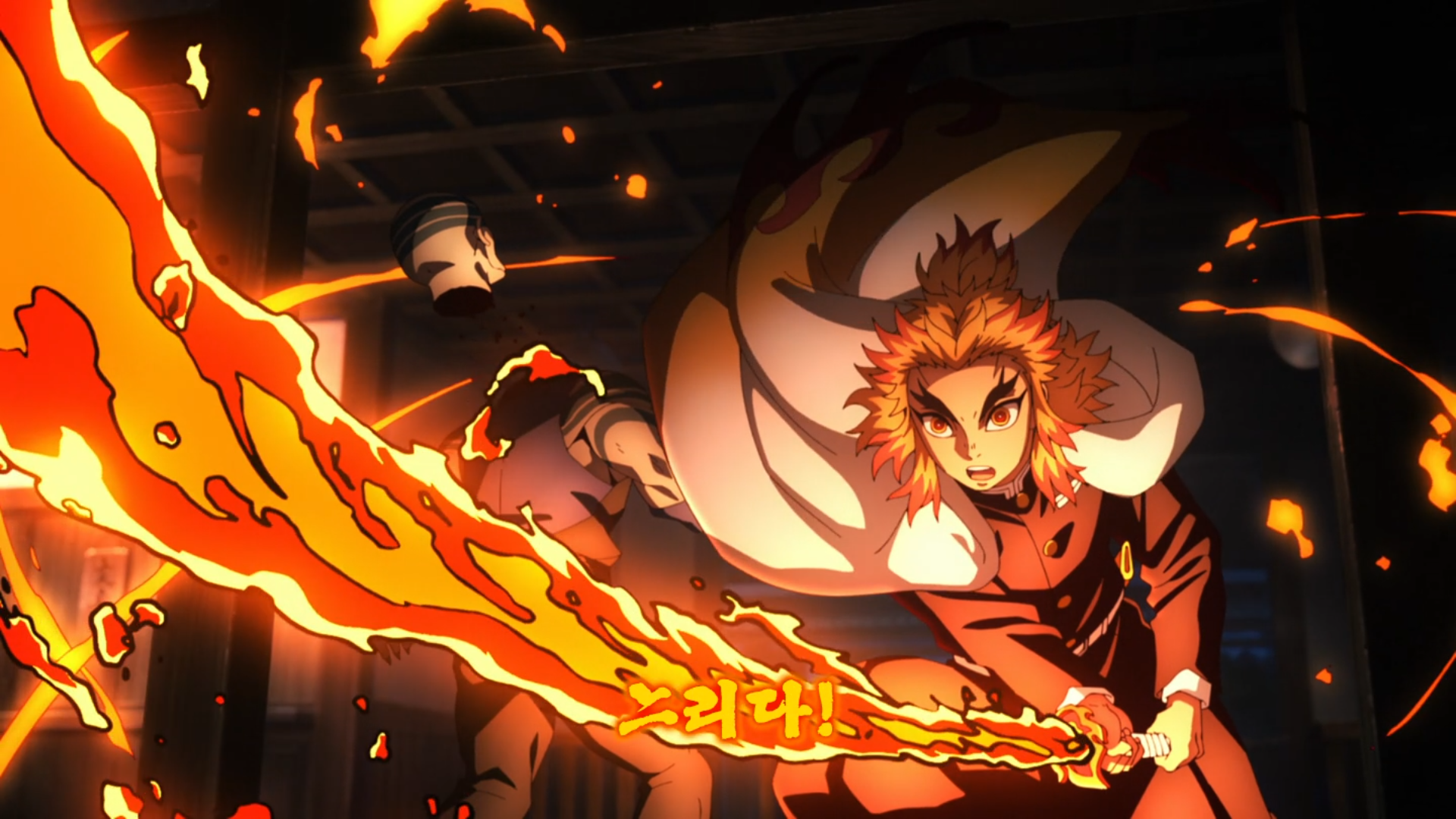 키워드: 귀멸의칼날 무한열차편, 렌고쿠 쿄쥬로, 염주 렌고쿠, 무한열차 1화, 귀멸 TVA 1.5기, 화염의 호흡, 렌고쿠 명대사, 귀멸의 칼날 기둥, 렌고쿠 맛있다, 시라누이