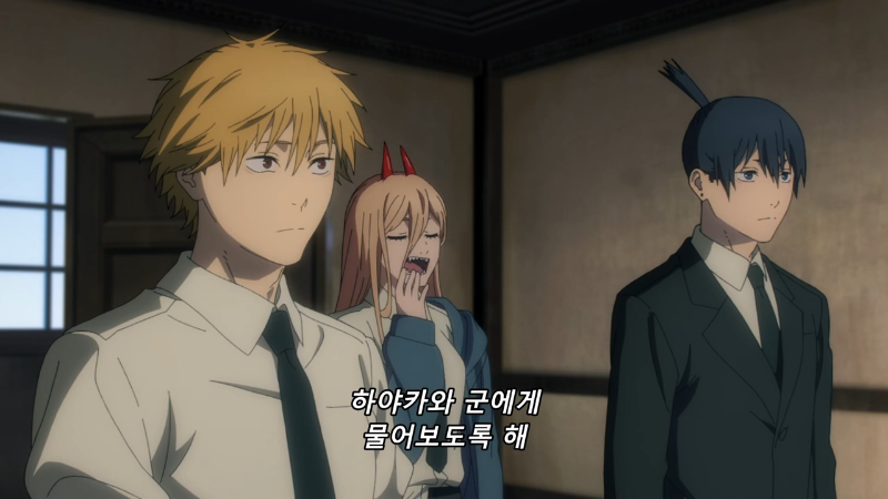 에피소드 후반, 덴지의 버디로 파워가 등장한다. 마인(사람의 시체를 가로챈 악마) 임에도 이성이 남아 있어 공안에 편입된 특수 케이스. 뿔이 달린 외모, 거침없는 언행, 그리고 특유의 "내 앞에 엎드려라, 인간!" 같은 대사는 등장하자마자 작품의 분위기를 완전히 뒤흔든다.